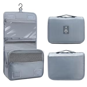NEUTYPECHIC Beauty Case da Viaggio, Impermeabile Beauty Case Uomo/Donna per Appendere, Borsa da Toilette Pieghevole per Flaconi, Articoli da Toeletta e Makeup, Viaggio Accessori Utili, Grigio