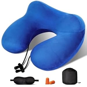 Kulamo Cuscino da Viaggio – Cuscino cervicale gonfiabile| Set di cuscini per il collo in velluto rimovibili e lavabili con mascherina per gli occhi e tappi per le orecchie | Adatto per aerei e uffici