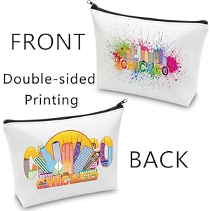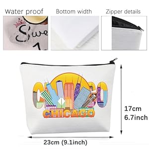 CARATTERISTICHE Questi sacchetti per il trucco con cerniera Chicago sono ottimi regali semplici e speciali. Immagini stampate su entrambi i lati di alta qualità, rivestimento impermeabile, queste borse portatili sono comode da usare nella vita quotidiana.