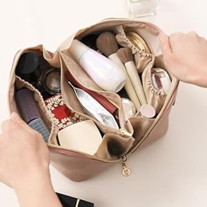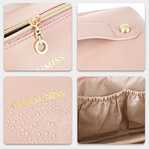 🔥[Spaziosa e Organizzata] – La borsa per cosmetici Garsumiss è progettata con molteplici tasche per un comodo stoccaggio di cosmetici, strumenti per il make up, articoli da toeletta e accessori da viaggio. Il scomparto principale ha 2 tasche elastiche e una grande tasca per mantenere gli oggetti organizzati. Il tessuto in pelle crema di alta qualità è leggero, resistente e impermeabile💦, rendendolo perfetto per tutte le avventure di viaggio.