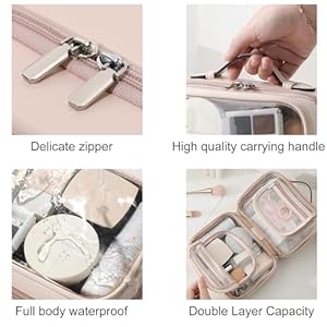 Veki Grande Capacità Borsa Cosmetica Trasparente da Viaggio, Doppia Apertura Borsa per il trucco Trousse Impermeabile per Viaggi, Beauty Case Organizzatore per Donne e Ragazze (Piccolo Rosa)