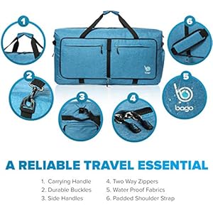 Un accessorio da viaggio affidabile: da utilizzare come bagaglio principale, borsa extra per la spesa, per la notte o per il weekend. Pesa 75% in meno rispetto alla maggior parte dei bagagli! Durante il viaggio, aprire in aeroporto per portare i vostri regali/souvenir, lavanderia o per trasferire oggetti da una valigia danneggiata per evitare spese di bagaglio in eccesso.