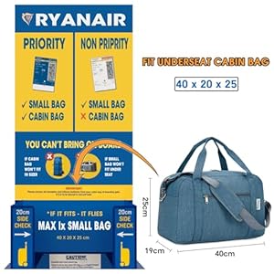 RISPARMIA LE SPESE EXTRA – [Modello: T3301] La borsa di dimensioni 40x19x25cm si adatta perfettamente al piccolo bagaglio a mano sotto il sedile di dimensioni 40x20x25cm delle compagnie aeree Ryanair, che può essere posizionato sotto il sedile senza dover pagare per il bagaglio extra