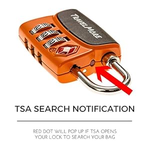 – L’indicatore rosso brevettato sui nostri lucchetti TSA a combinazione si illumina se il tuo bagaglio è stato aperto da un agente TSA. In questo modo, potrai controllare che tutti i tuoi oggetti siano intatti e presenti quando sei ancora in aeroporto