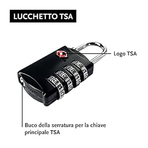 Approvato dalla TSA: Questo lucchetto valigia è approvato dalla TSA (Transportation Security Administration) e approvato per i viaggi. Gli agenti doganali possono utilizzare una speciale chiave di sblocco per aprire i bagagli durante i controlli di sicurezza senza danneggiarli.