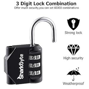 Facile da usare: non c’è bisogno di preoccuparsi di tenere al sicuro una chiave o più chiavi. Il grillo è abbastanza sottile da passare attraverso tutte le cerniere e i fori di bloccaggio di dimensioni standard, offrendo una maggiore flessibilità per fissare una varietà di oggetti interni ed esterni. I lucchetti a combinazione a 3 cifre consentono di impostare il proprio codice con facilità. Le istruzioni sono incluse nella confezione. Inoltre, la combinazione SharkByte rende ogni clic di composizione in posizione, per una migliore precisione e sensazione nell’allineamento del codice