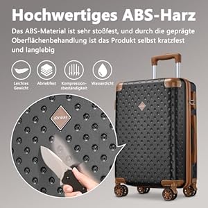 Alta qualità: set di valigie rigide in ABS: il set di valigie Joyway è realizzato in materiale ABS ad alta resistenza, plastica. Si distingue per l’alta stabilità e la resistenza agli urti ed è particolarmente resistente ai graffi grazie alla sua durezza superficiale. A ciò si aggiungono i 4 piedini in plastica per una posizione sicura e le protezioni angolari appositamente sagomate che dissipano in modo ottimale urti e impatti. Cerniera intrecciata a denti a catena migliorata per un morso sicuro per evitare strappi.