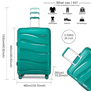 Valigia di alta qualità: La valigia è realizzata in materiale polipropilene per il guscio duro, che rende il bagaglio più durevole, leggero e resistente agli urti. Rispetto alla plastica ABS e PC, il materiale PP è più leggero e mantiene la sua durata.