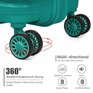 Ruote silenziose: grazie al nuovo TPE morbido e alle sfere lubrificanti all’interno delle ruote, la valigia da viaggio si muove in modo molto silenzioso e fluido con le ruote doppie che ruotano a 360 gradi. La maniglia telescopica in alluminio è più robusta e leggera, la maniglia laterale di facile presa può essere davvero comoda quando si solleva la valigia con un peso elevato.