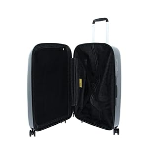 Trolley rigido di medie dimensioni con 4 ruote doppie, chiusura TSA e dettagli a contrasto posteriore. Slightly textured surfaces, rounded and soft shapes are the elements defining this re-design of an storical line of Mandarina Duck.