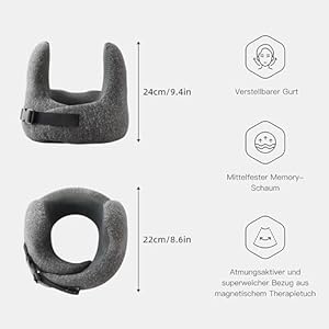 Con il design perfetto della forma delle curve, questo cuscino da viaggio in schiuma di memoria può meglio fissare il collo, impedisce alla testa di cadere in avanti, allevia il dolore al collo durante il viaggio. Forniamo cinghie regolabili, è possibile regolare l’angolo e le dimensioni del cuscino casualmente, soddisfacendo le diverse esigenze di dimensione del collo, scegliere di fornire supporto e comfort dove ne avete bisogno.