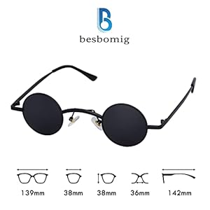 【MATERIALI DI ALTA QUALITÀ】Questi occhiali da sole rotondi piccoli vintage sono realizzati con lenti UV400 HD di alta qualità, comodi naselli, cerniere in metallo rinforzato, squisite aste in metallo resistente, tutti i dettagli ti garantiscono un uso prolungato. Ed occhiali tondi piccoli è anche in grado di renderlo una meravigliosa idea regalo per amici e familiari.