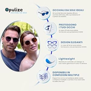 OPULIZE KAT Occhiali da Sole – Montatura a Occhi di Gatto – Uomo e Donna – Cerniere a Molla – S59