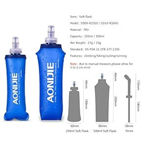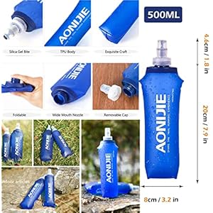 AONIJIE 2PCS Pieghevole 250 ml/500ml TPU Outdoor Sport Acqua Idratazione Bottiglia Soft Flask per corsa, Bicicletta, Campeggio, Escursionismo (500ML)