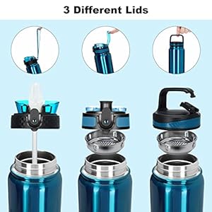 Tre diversi coperchi: la bottiglia d’acqua in metallo è dotata di tre coperchi individuali per soddisfare tutte le vostre esigenze. Il coperchio del bocchino, il coperchio della cannuccia e il coperchio a moschettone, tutti possono essere utilizzati per bevande calde o fredde. Con la tracolla, il manico integrato e il passante è possibile trasportare facilmente la bottiglia o agganciarla a uno zaino.