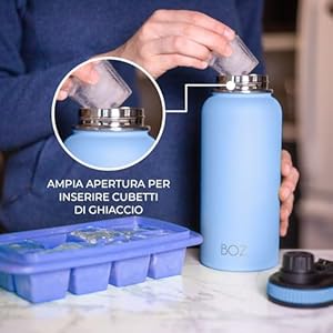 ✅ SORSEGGIA CON STILE: Che si tratti un tè o di una spremuta, ogni bottiglia termica 1 litro BOZ è stata progettata per mantenere acqua e bevande alla stessa temperatura, il più a lungo possibile. In viaggio, in ufficio, in palestra, a casa o durante un evento sportivo, portala sempre con te!