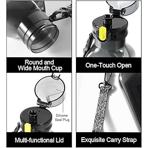 Materiale sano: questa borraccia riutilizzabile è realizzata in plastica alimentare e non ha odore. Completo di coperchio in ABS a tenuta stagna con guarnizione interna in silicone alimentare.