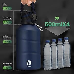 🌊 Facile da trasportare: la borraccia da esterno è dotata di un anello con manico e di una cinghia per un facile trasporto, perfetta per la scuola, la palestra, l’ufficio, l’aria aperta e il campeggio.