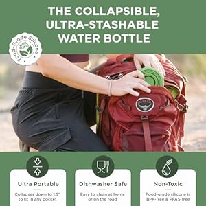 Ultra portatile: con una guarnizione a tenuta stagna per evitare fuoriuscite e un design pieghevole che rende i viaggi aerei un gioco da ragazzi, questa morbida borraccia da viaggio è progettata per mantenerti idratato in movimento. Una volta espansa, la bottiglia pieghevole si adatta anche alla maggior parte dei portabicchieri