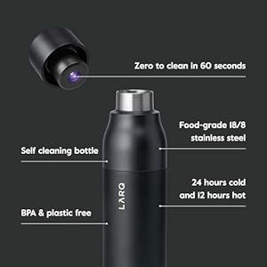 LARQ Bottiglia PureVis 500ml – Bottiglia di vetro per acqua | autopulente e isolata in acciaio inox con depuratore UV e design premiato | 2 Anni di Garanzia, Obsidian Black
