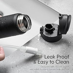 ✔️【Leak Proof and Easy to Clean】Designed with silicone gasket and safety buckle to prevent leak and spill. Detachable straw with easy cleaning. (Straw brush is included)